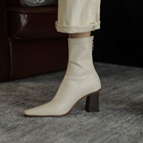 Back Zipper Thick Heel Socks Boots High Heel Short